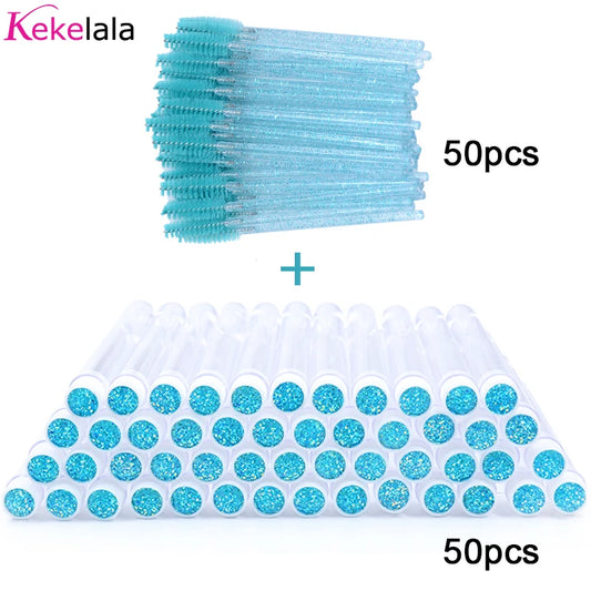 50-teiliges Wimpernbürstenset mit Glitzer-Röhrchen